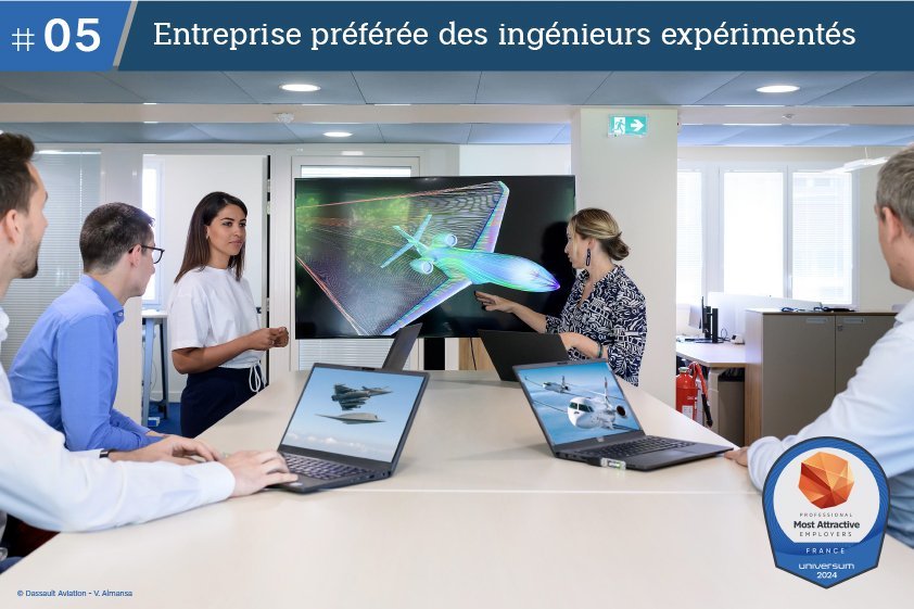 In 2024, Dassault Aviation still ranks in the Top 10 of preferred companies for experienced engineers, reaching 5th place, regardless of sector.